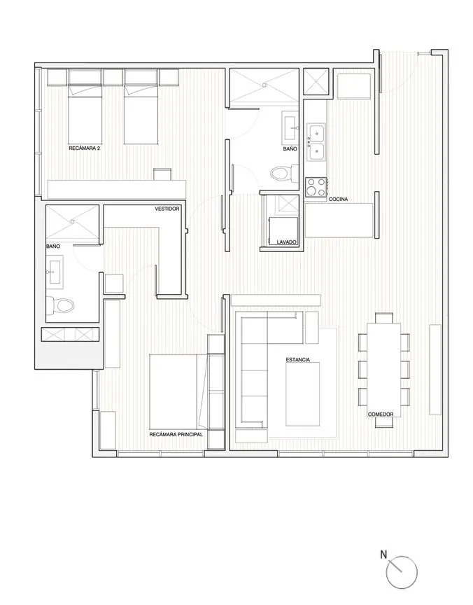 El departamento cuenta con 112 m² muy bien aprovechados, distribuidos en 3 recámaras y 2 baños completos. La recámara principal tipo suite y las recámaras secundarias tienen closets y amplios ventanales, lo que garantiza luz natural y vistas únicas tanto de día como de noche. La sala-comedor en esquina se integra con una cocina integral equipada(barra, estufa, campana, microondas, refrigerador) y área de lavandería independiente. Todo el depa tiene pisos cerámicos en tonos claros, aire acondicionado central y acabados de lujo, ideal para quien busca llegar solo con sus cosas y empezar a disfrutar.